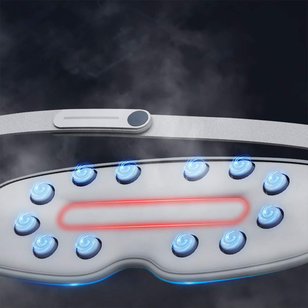 目元のツボ(睛明・攅竹・太陽など)に沿って配置された12個のソフトマッサージヘッドが、